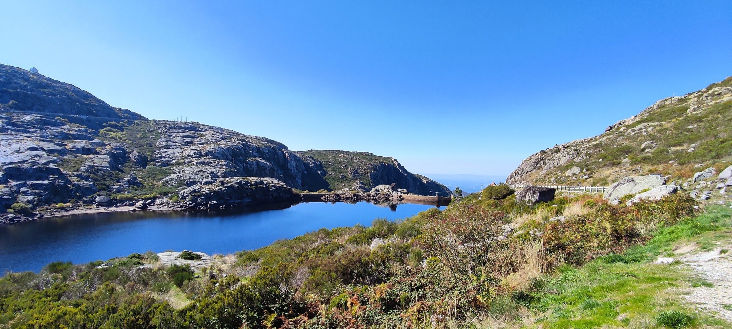 We stopped along the way at a lakeside — the water so clear and turquoise it looked unreal — and again at a viewpoint where we could see all the way back to Covilhã far below and beyond it, south to the plains. Standing there and tracing the road we'd just driven felt like something.