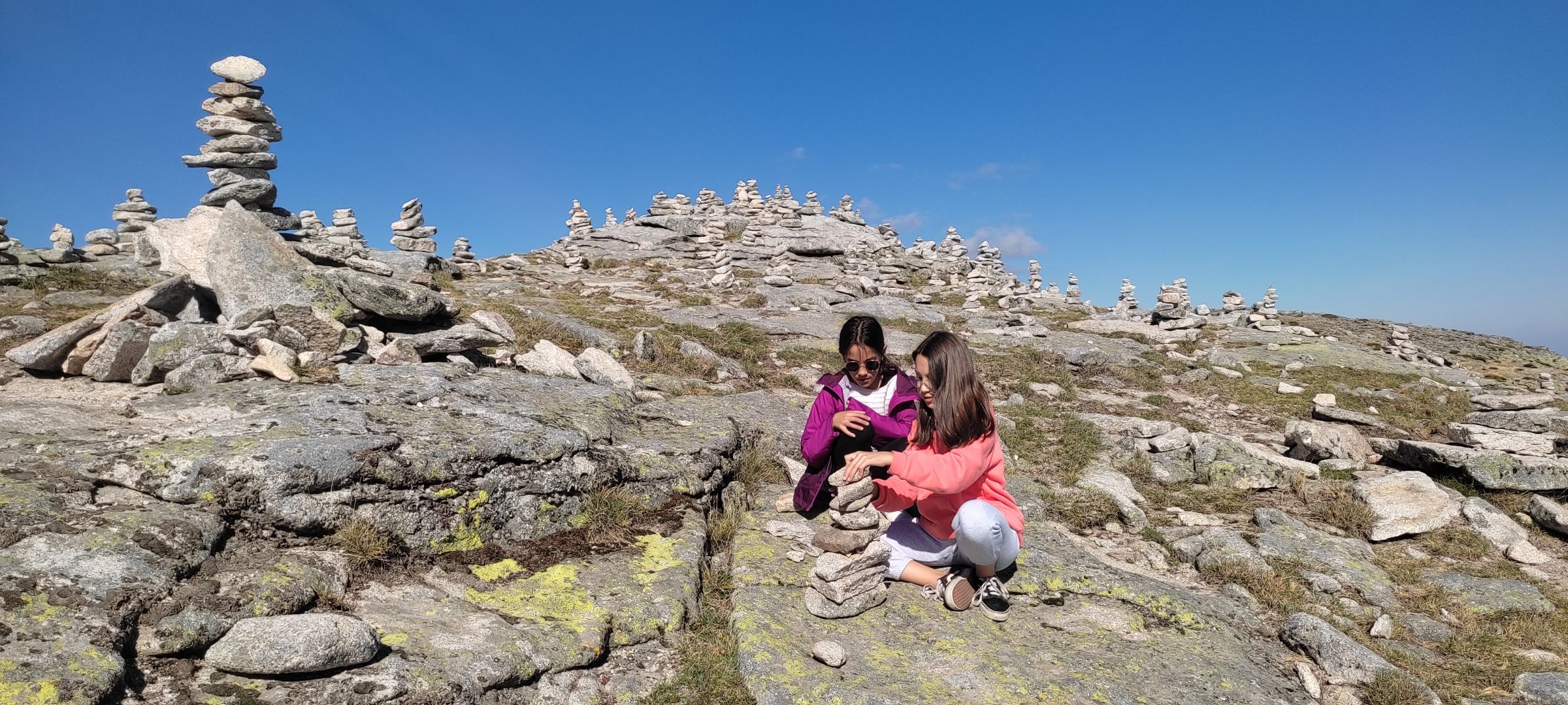 At the top, the temperature dropped sharply despite the blazing summer day below. And spread across the summit, as far as we could see in every direction, were hundreds — maybe thousands — of Rujum, cairns, stone towers built by visitors over years and years. Each one balanced carefully, stone on stone on stone.