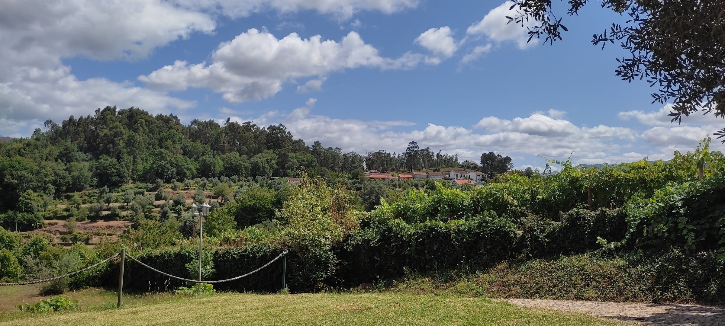 The road north from Benny and Terese's took us through some of the most quietly beautiful driving in Portugal. Two hours, passing through Viseu and Lamego, crossing the Douro River, the landscape shifting and rolling around us until we found ourselves pulling into the small old town of Arco de Baúlhe — and specifically, into the narrowest campsite entrance we had ever attempted with a towed caravan.